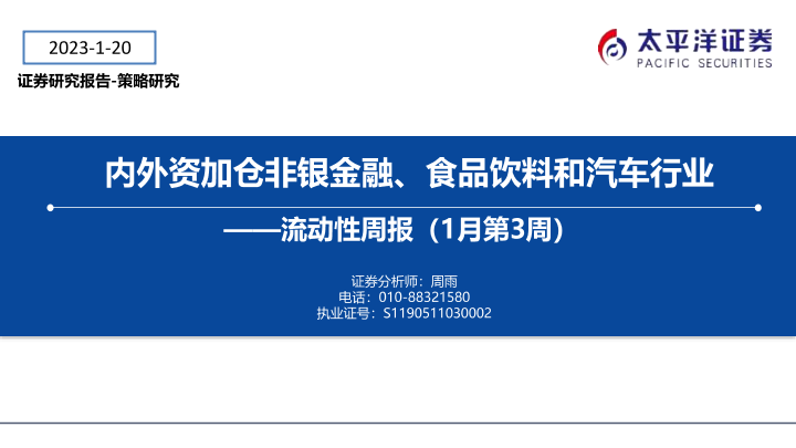 【太平洋证券】【20230120】流动性周报(1月第3周):内外资加仓非银金融、食品饮料和汽车行业-19页