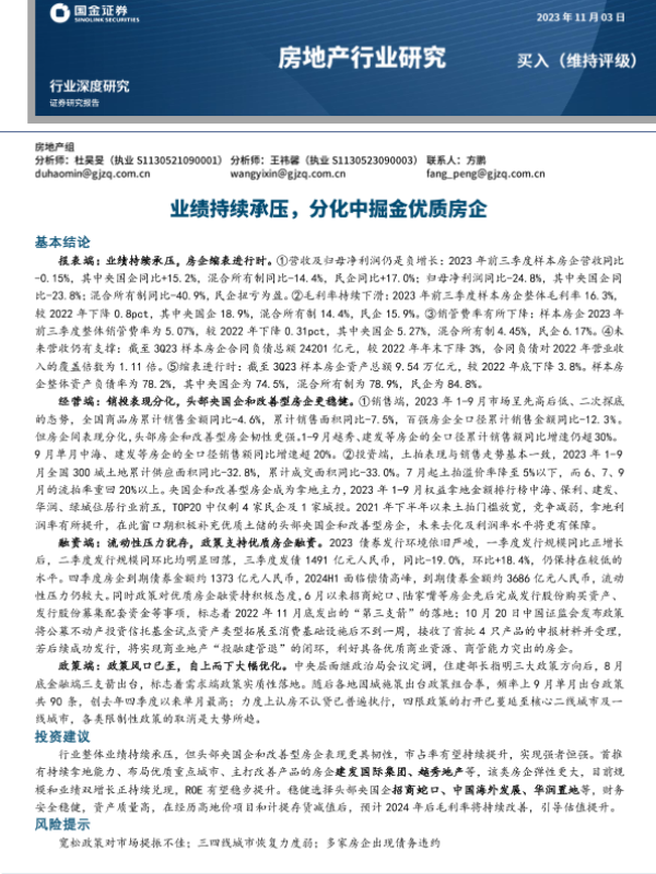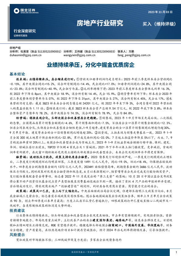 【国金证券】【2023】房地产行业研究:业绩持续承压,分化中掘金优质房企-18页
