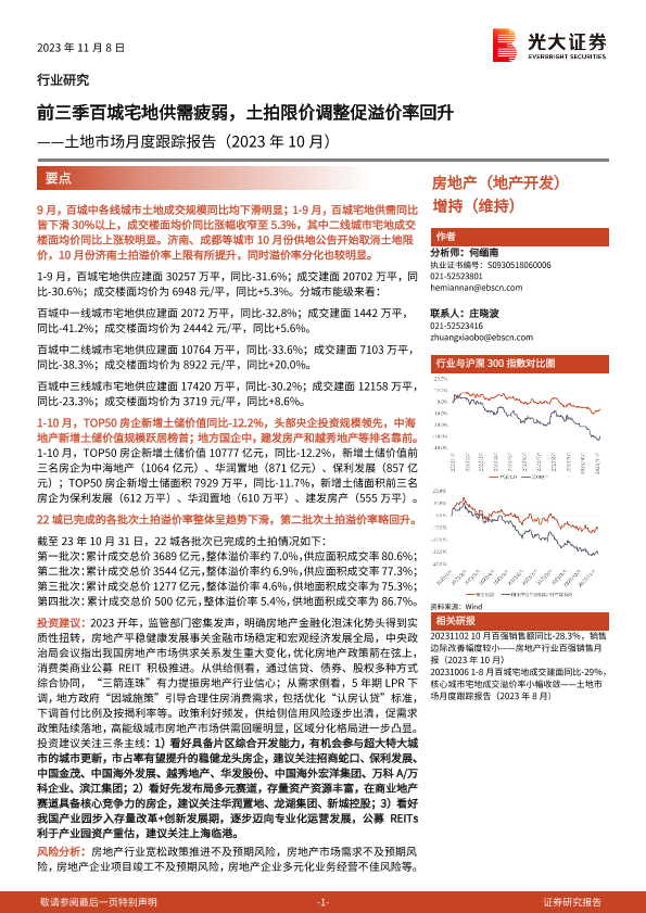 【光大证券】【20231108】前三季百城宅地供需疲弱,土拍限价调整促溢价率回升-16页