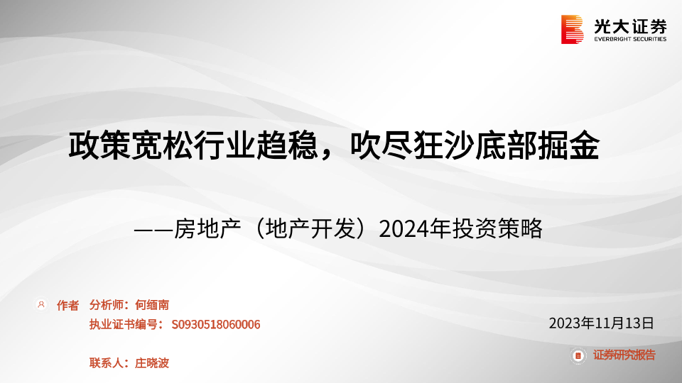 【光大证券】【20231113】房地产(地产开发)2024年投资策略:政策宽松行业趋稳,吹尽狂沙底部掘金-51页