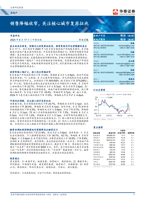 【华泰证券】【20240617】销售降幅收窄,关注核心城市复苏征兆-16页