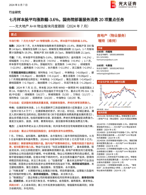 【光大证券】【20240807】光大地产A+H物业板块月度跟踪(2024年7月)-10页
