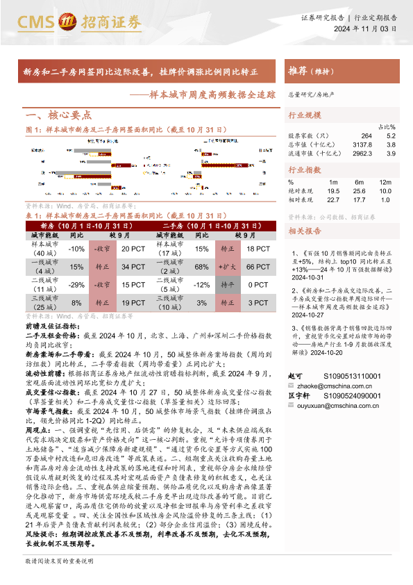 【海通证券】【20241103】样本城市周度高频数据全追踪:新房和二手房网签同比边际改善,挂牌价调涨比例同比转正-12页