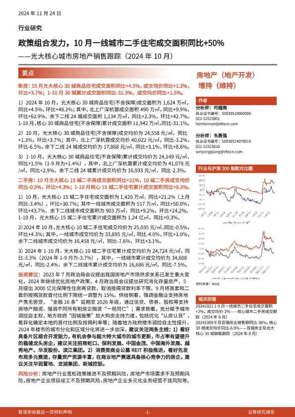 【光大证券】【20241124】光大核心城市房地产销售跟踪(2024年10月):政策组合发力,10月一线城市二手住宅成交面积同比+50%-10页