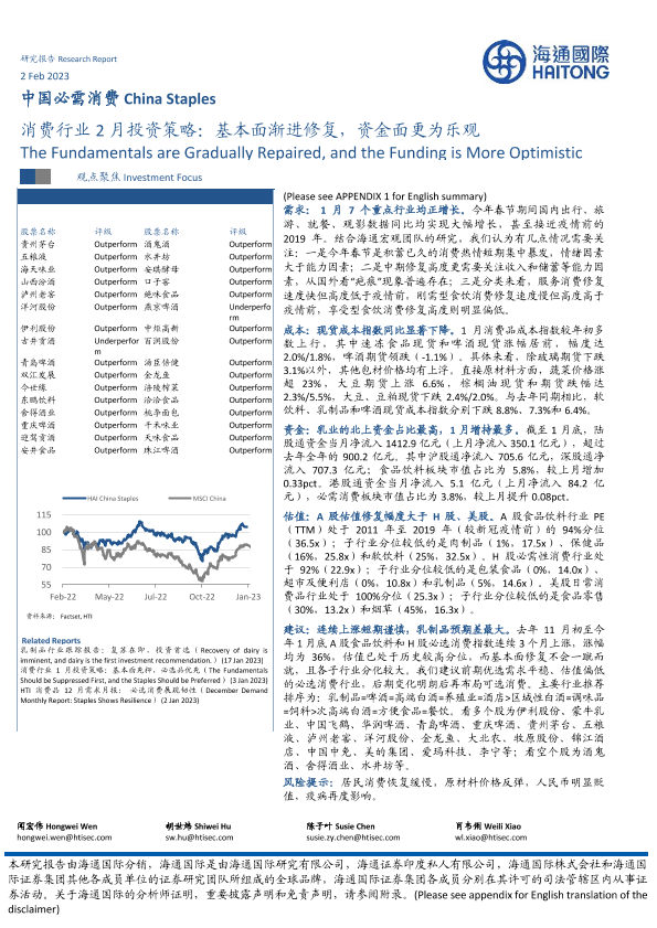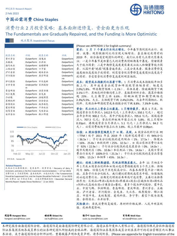 【海通国际】【20230202】消费行业2月投资策略:基本面渐进修复,资金面更为乐观-41页