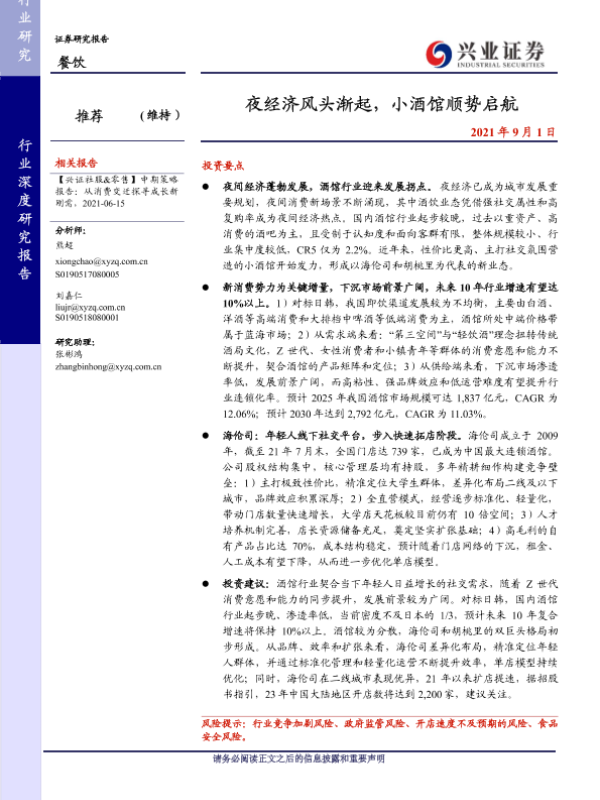 兴业证券 住宿餐饮 2021年 PDF 4.08 MB