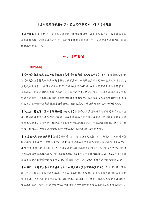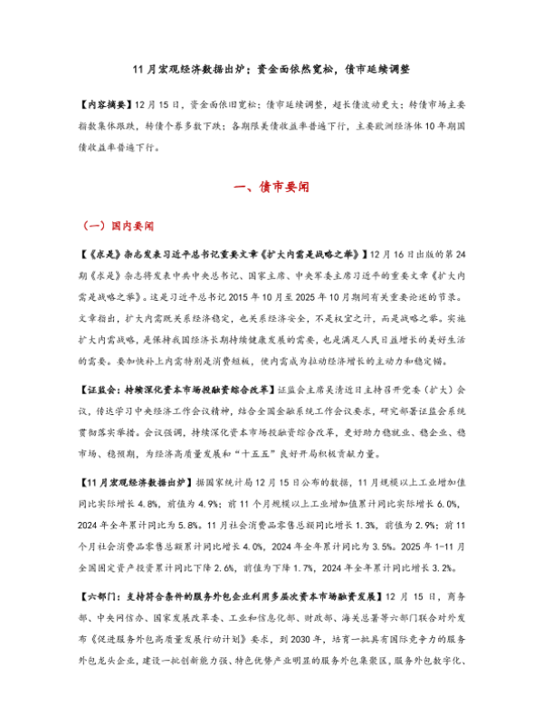 【东方金诚】【202312】11月宏观经济数据出炉;资金面依然宽松_债市延续调整-8页