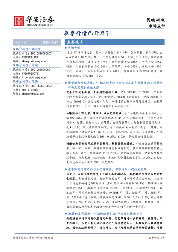 春季躁动 A股市场 人工智能 锂电板块 成长风格