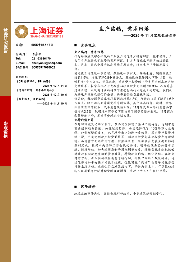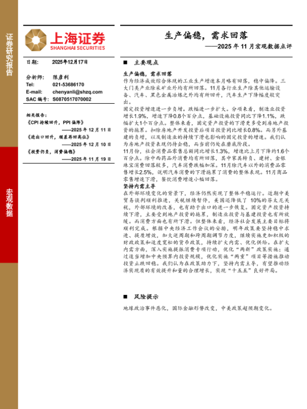 【上海证券】【202512】2025年11月宏观数据点评_生产偏稳_需求回落-9页