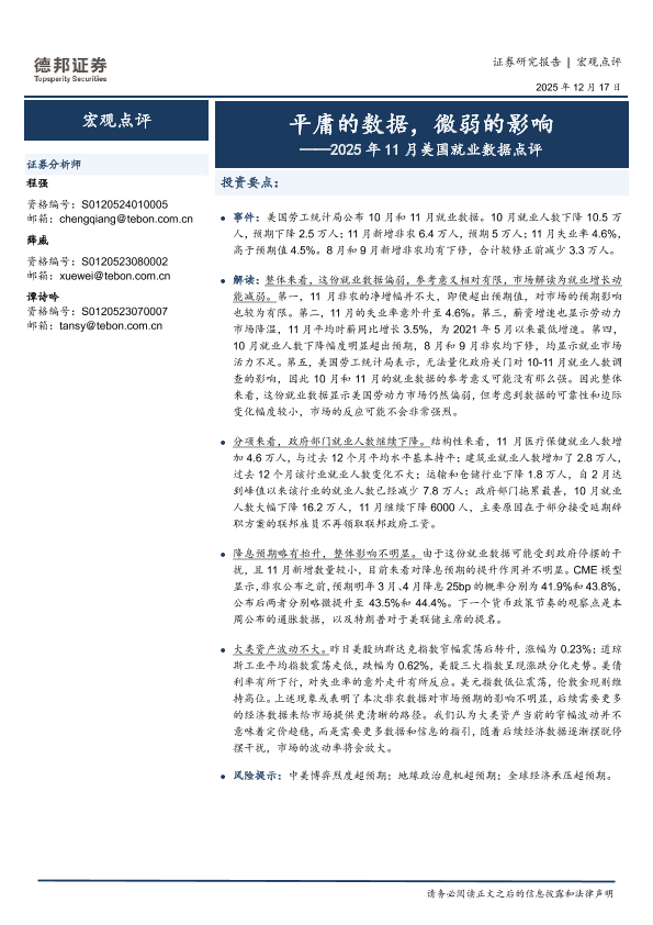 【德邦证券】【2025】平庸的数据,微弱的影响——2025年11月美国就业数据点评-4页