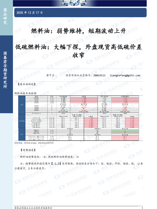 【国泰君安期货】【202512】燃料油:弱势维持,短期波动上升;低硫燃料油:大幅下探,外盘现货高低硫价差收窄-2页