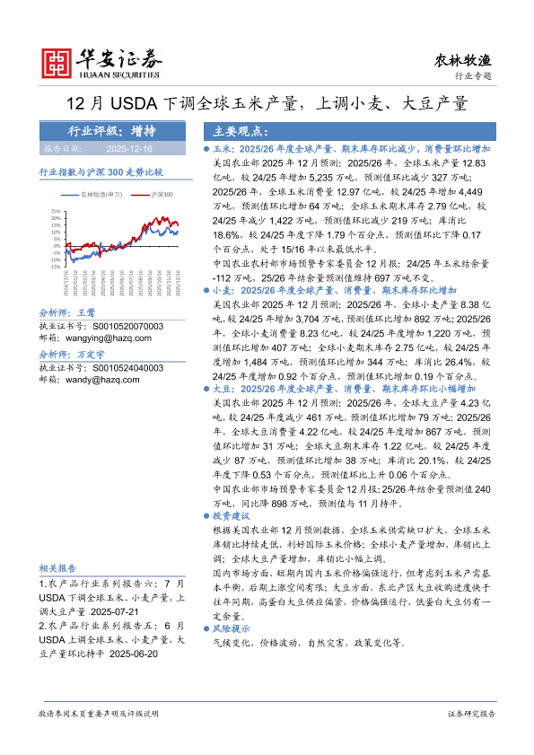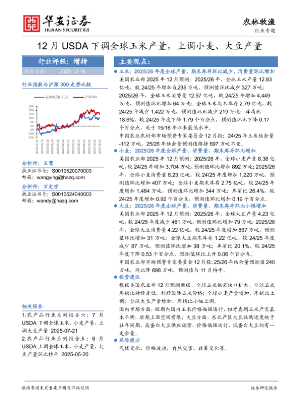 【华安证券】【202512】12月USDA下调全球玉米产量,上调小麦、大豆产量-16页