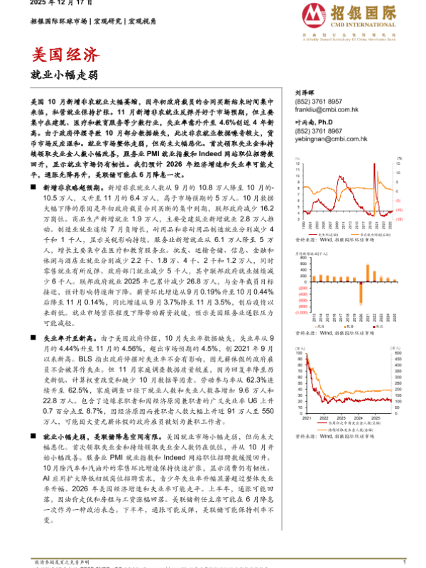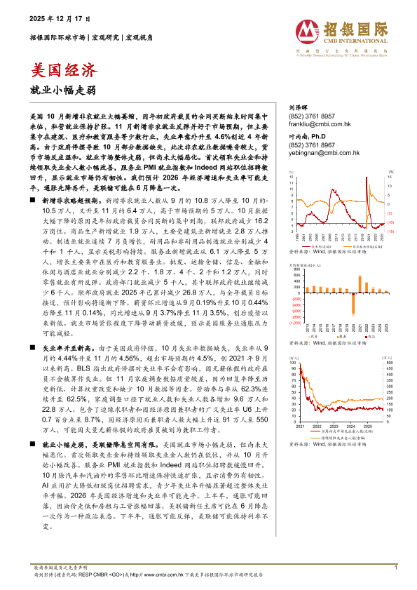 【招银国际环球市场】【202311】美国经济就业小幅走弱-6页