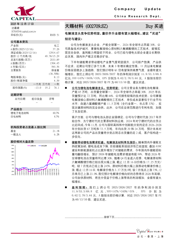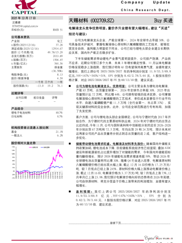 【群益证券】【202512】天赐材料-002709.SZ-电解液龙头竞争优势明显_量价齐升业绩有望大幅增长_建议_买进-3页