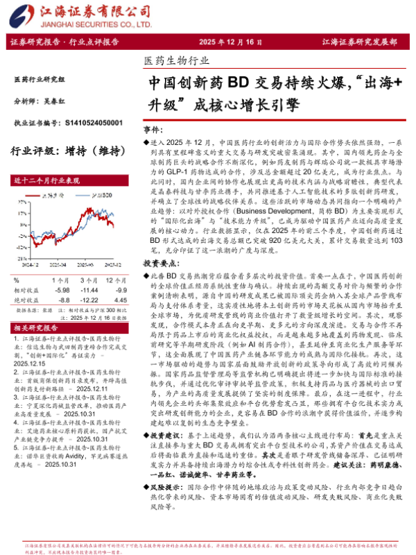 【江海证券】【202512】中国创新药BD交易持续火爆出海+升级成核心增长引擎-3页