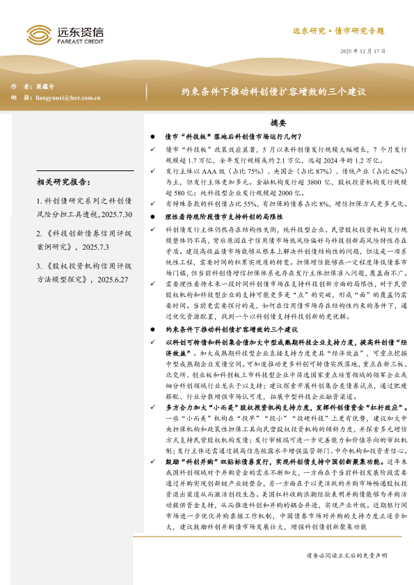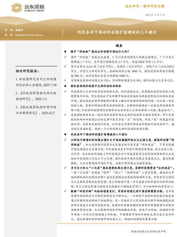 【远东资信】【202512】约束条件下推动科创债扩容增效的三个建议-9页