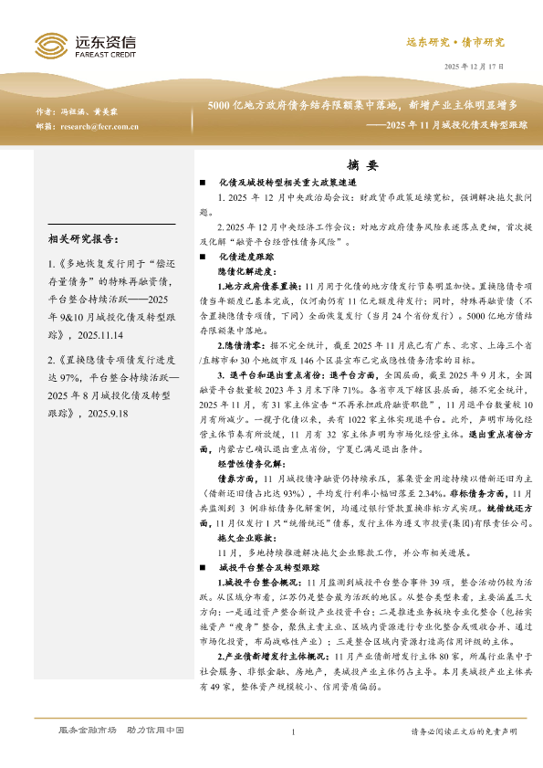 【远东研究】【202512】2025年11月城投化债及转型跟踪-19页