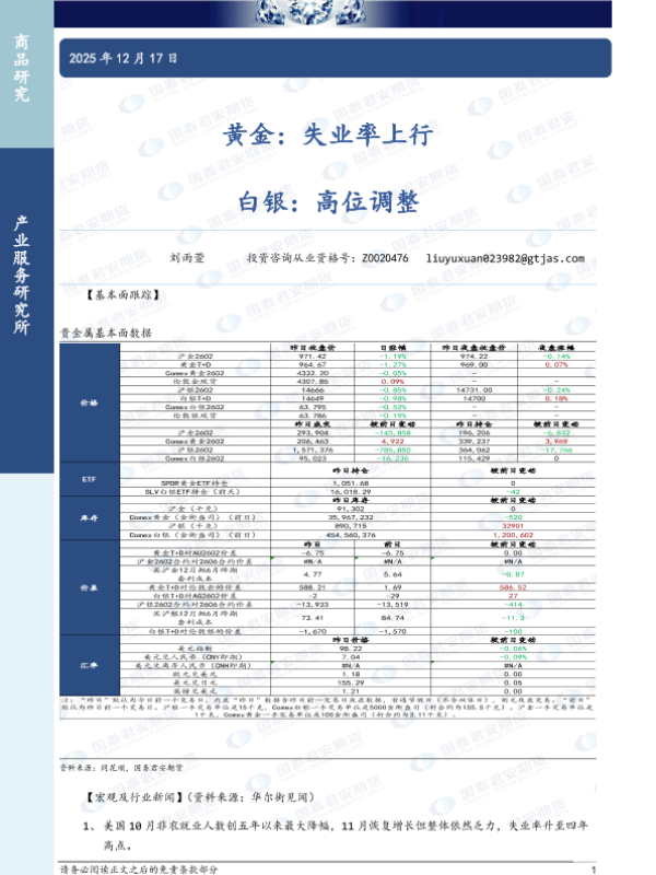 【国泰君安期货】【202512】黄金:失业率上行,白银:高位调整-3页