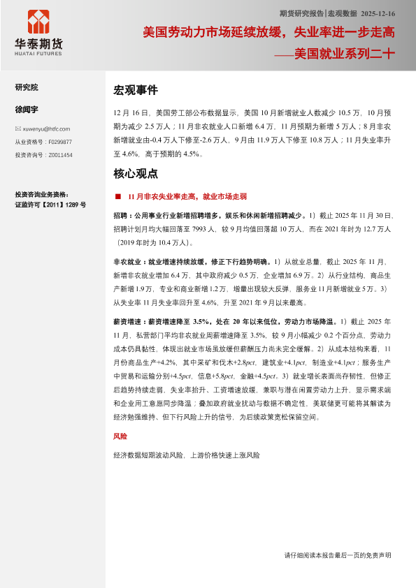 【华泰期货】【202512】美国劳动力市场延续放缓,失业率进一步走高-4页