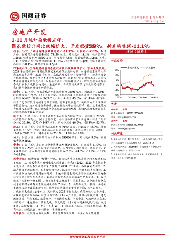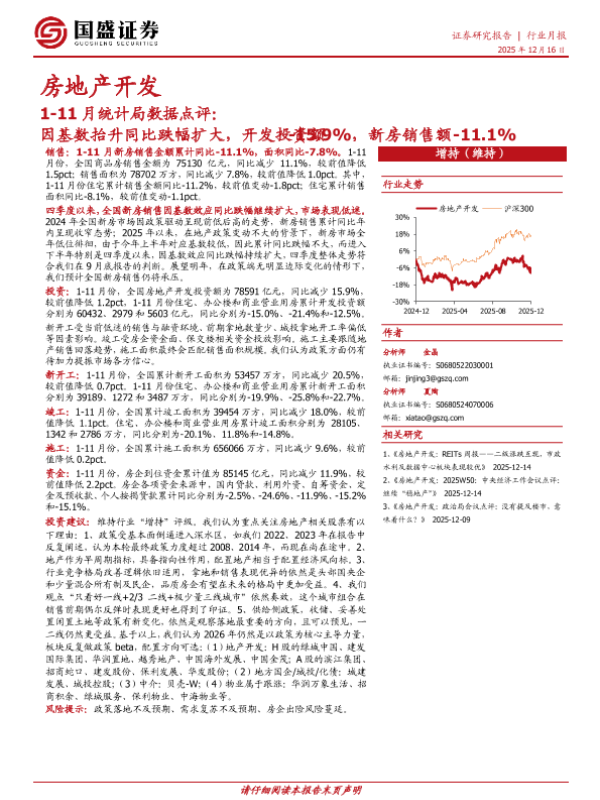 【国盛证券】【202512】20251216-国盛证券-房地产开发1-11月统计局数据点评_因基数抬升同比跌幅扩大_开发投资额下降15.9_新房销售额下降11.1-13页