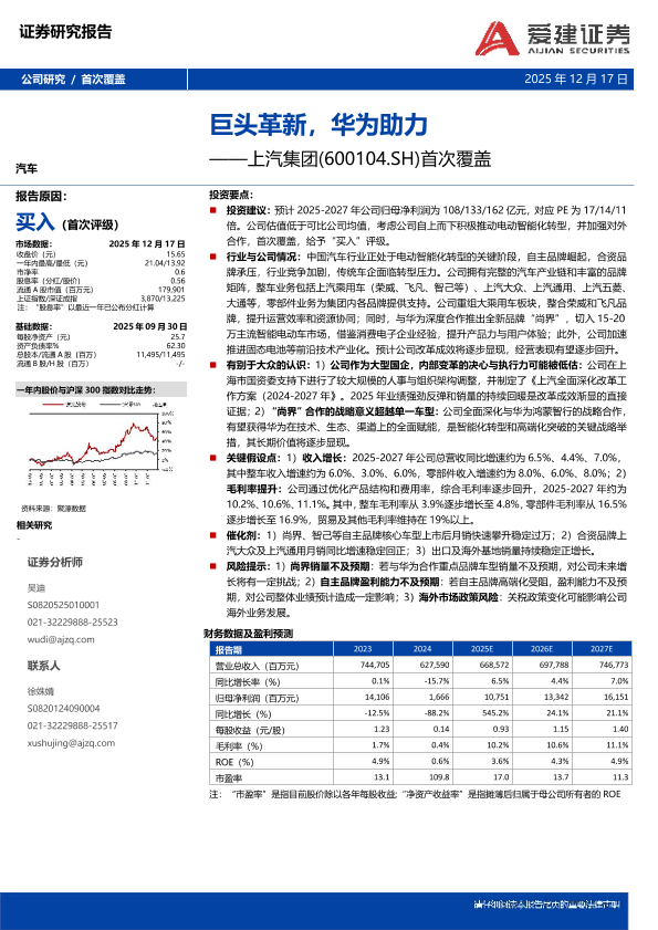 【爱建证券】【202512】巨头革新,华为助力——上汽集团(600104.SH)首次覆盖-5页