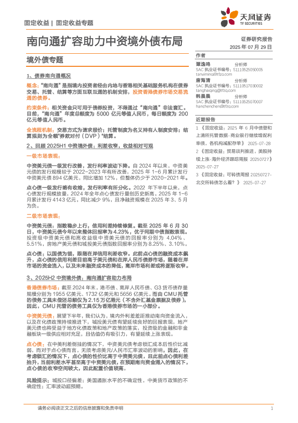 【天风证券】【202507】境外债专题:南向通扩容助力中资境外债布局-35页