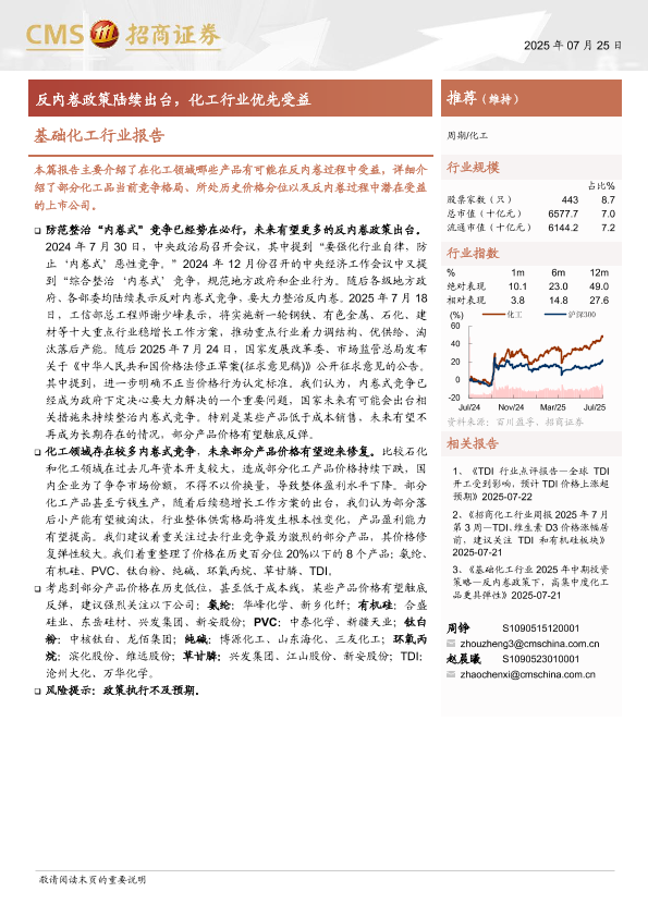 【海通证券】【202507】基础化工行业报告:反内卷政策陆续出台,化工行业优先受益-48页