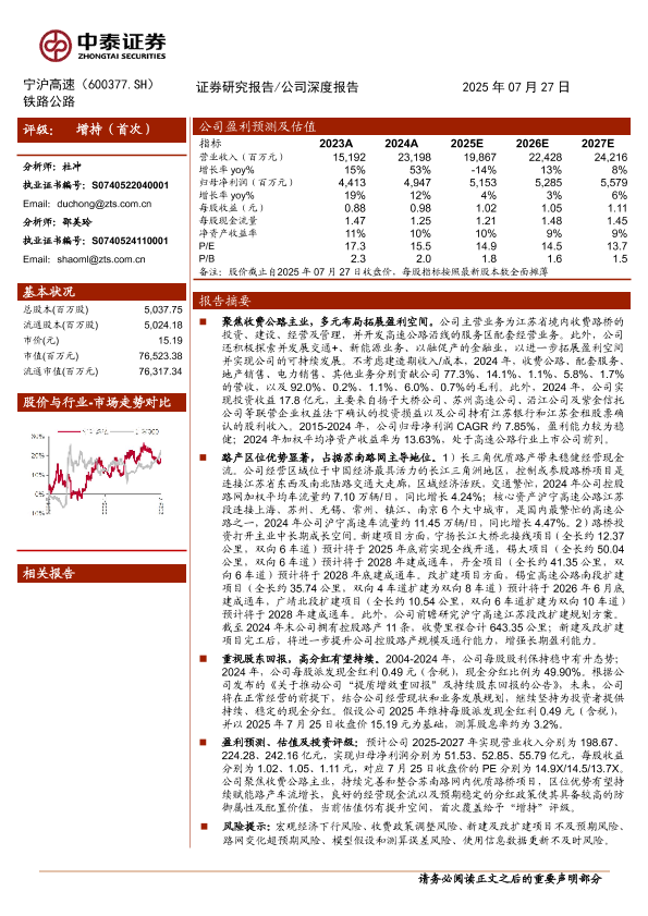 【中泰证券】【202507】宁沪高速(600377)公路区位优势显著,现金分红稳中有升-25页
