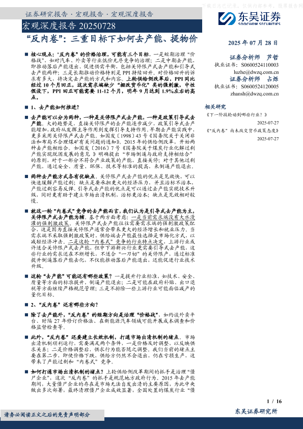 【东吴证券】【202507】“反内卷”:三重目标下如何去产能、提物价-16页