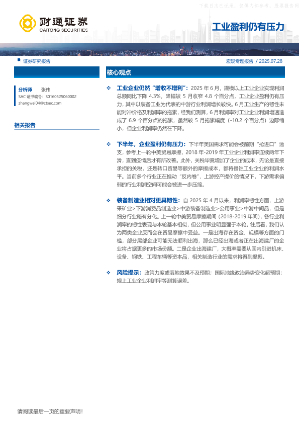 【财通证券】【202507】工业盈利仍有压力-11页