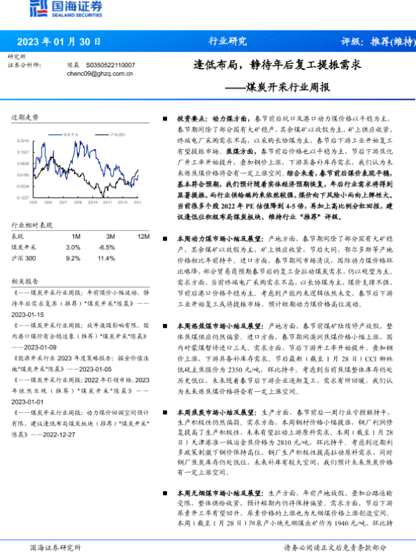 【国海证券】【20230130】煤炭开采行业周报:逢低布局,静待年后复工提振需求-18页