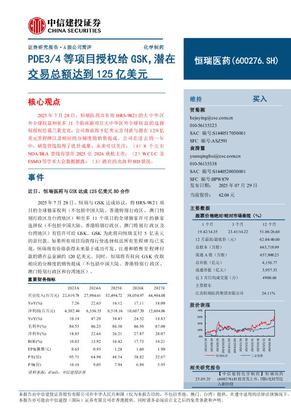 【中信建投证券】【202507】恒瑞医药(600276)PDE3/4等项目授权给GSK,潜在交易总额达到125亿美元-11页