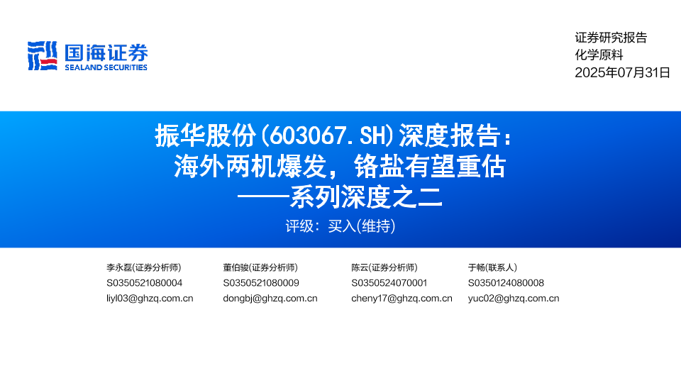 【国海证券】【202507】振华股份(603067)深度报告:海外两机爆发,铬盐有望重估-75页