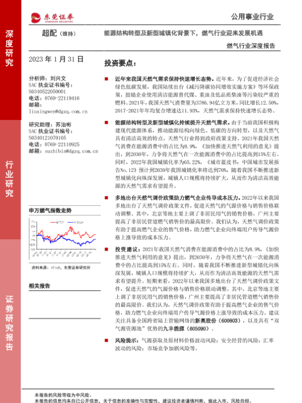 【东莞证券】【20230131】燃气行业深度报告:能源结构转型及新型城镇化背景下,燃气行业迎来发展机遇-15页