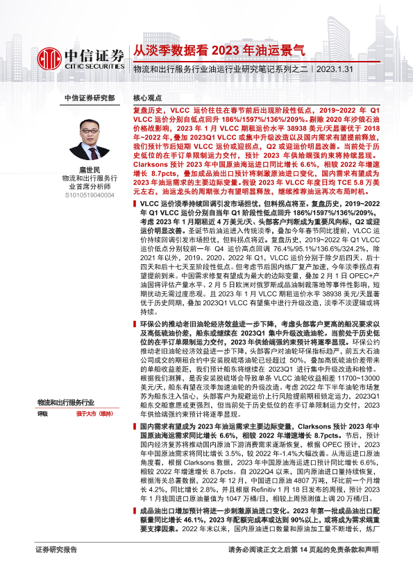 【中信证券】【20230131】物流和出行服务行业油运行业研究笔记系列之二:从淡季数据看2023年油运景气-15页