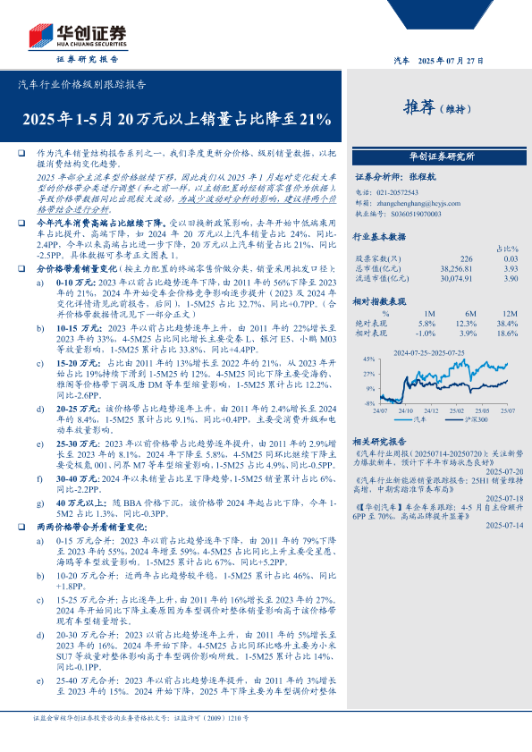 【华创证券】【202507】汽车行业价格级别跟踪报告:2025年1-5月20万元以上销量占比降至21%-10页