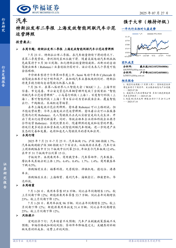 【华福证券】【202507】特斯拉发布二季报上海发放智能网联汽车示范运营牌照-12页