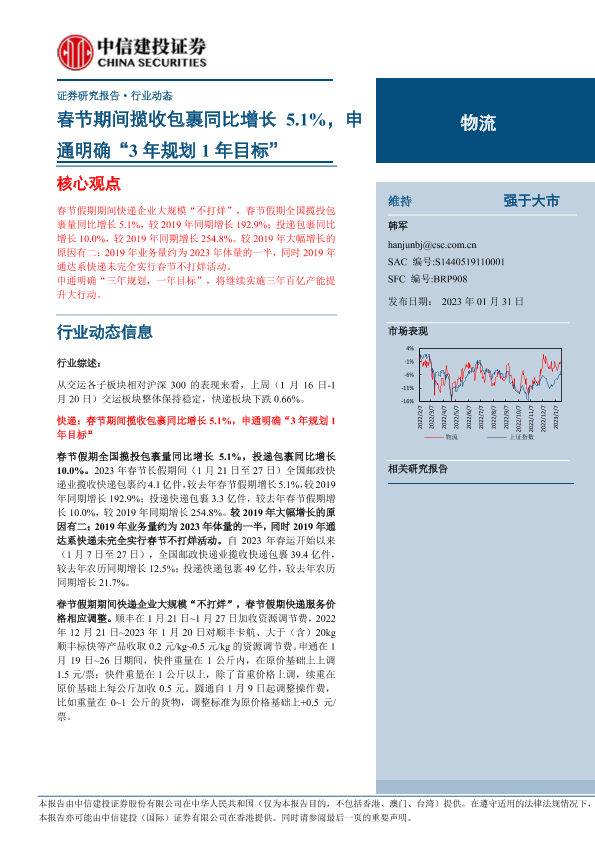 【中信建投证券】【20230131】物流行业证券研究报告:春节期间揽收包裹同比增长5.1%,申通明确“3年规划1年目标”-25页