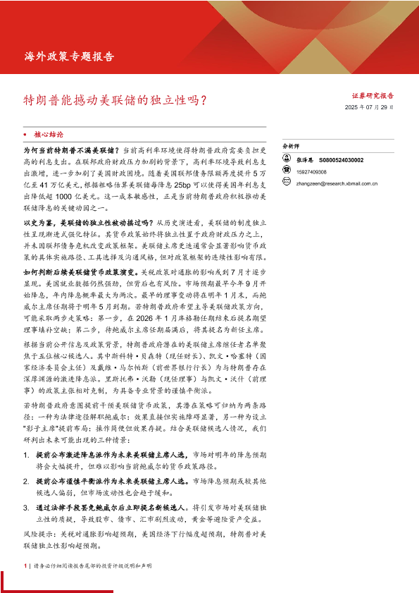 【西部证券】【202507】特朗普能撼动美联储的独立性吗?-24页
