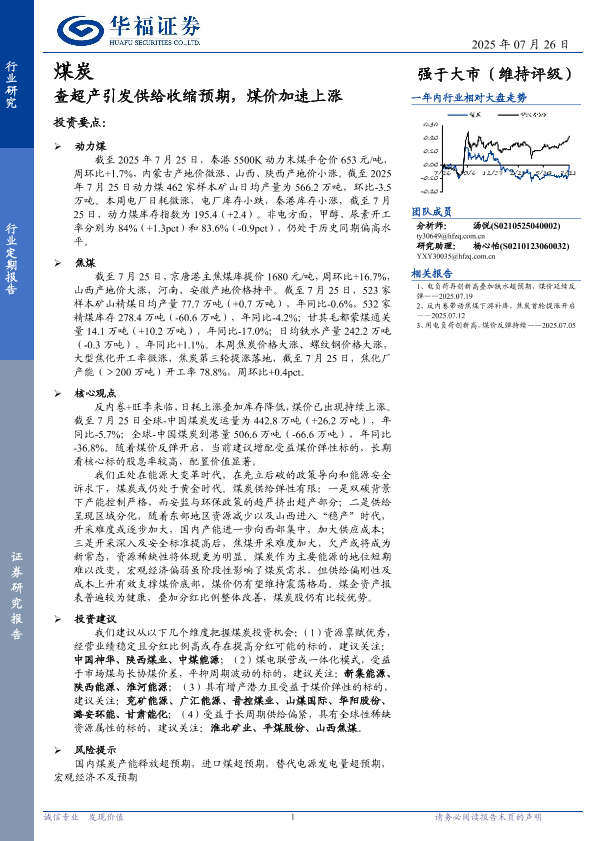 【华福证券】【202507】查超产引发供给收缩预期,煤价加速上涨-28页
