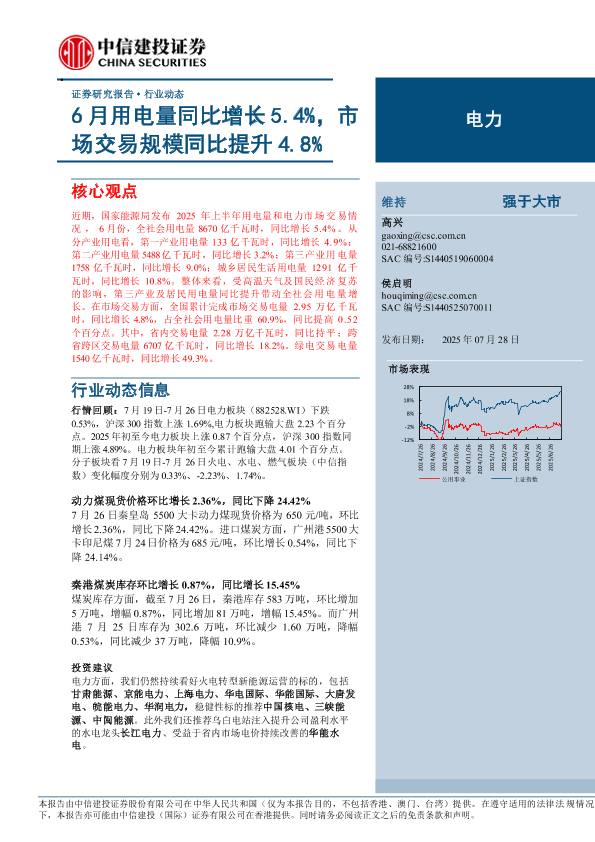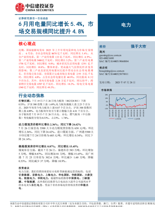 【中信建投证券】【202507】6月用电量同比增长5.4%,市场交易规模同比提升4.8%-15页