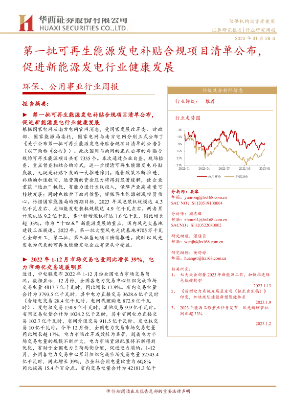 【华西证券】【20230128】环保、公用事业行业周报:第一批可再生能源发电补贴合规项目清单公布,促进新能源发电行业健康发展-19页