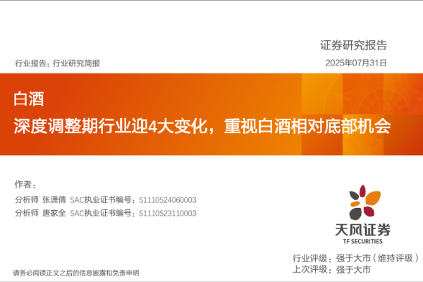 【天风证券】【202507】深度调整期行业迎4大变化,重视白酒相对底部机会-22页