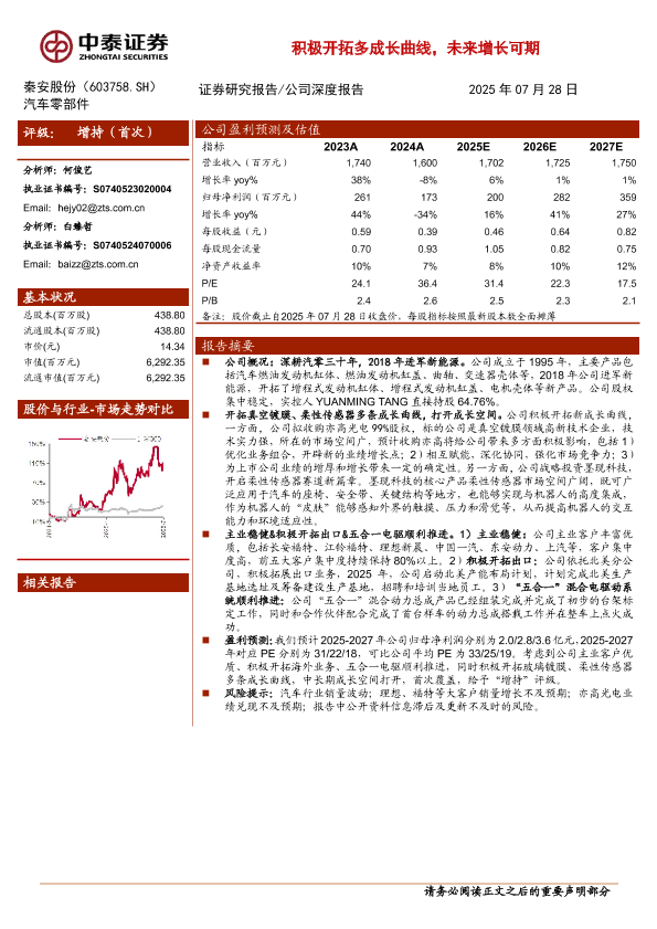【中泰证券】【202507】秦安股份(603758)积极开拓多成长曲线,未来增长可期-18页