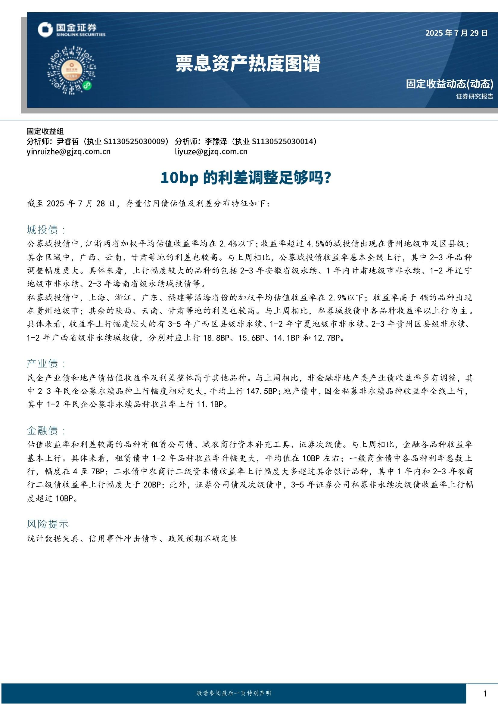 【国金证券】【202507】票息资产热度图谱:10bp的利差调整足够吗?-20页