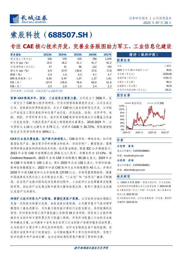 【长城证券】【202507】索辰科技(688507)专注CAE核心技术开发,完善业务版图助力军工、工业信息化建设-32页