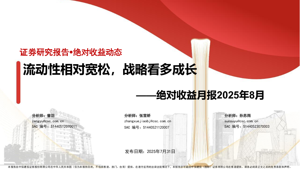 【中信建投证券】【202507】流动性相对宽松,战略看多成长——绝对收益月报2025年8月-53页