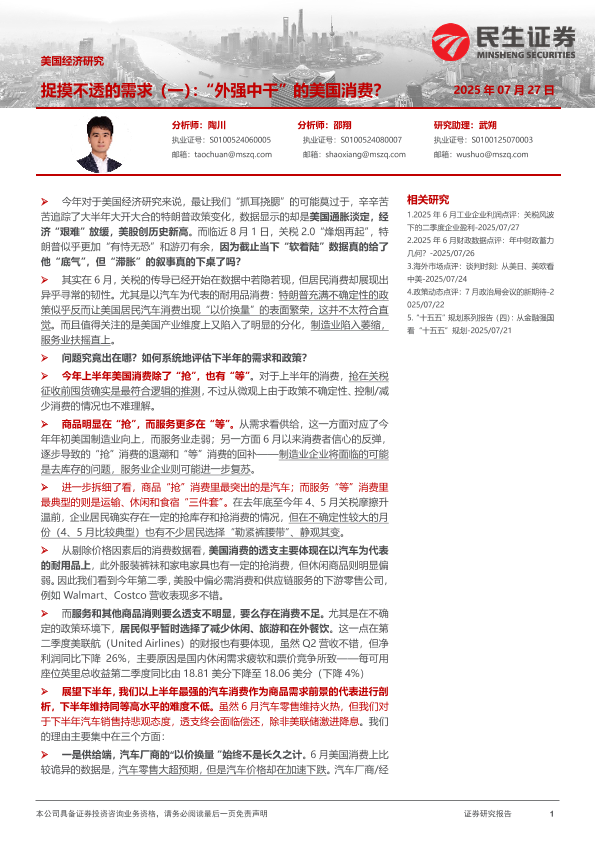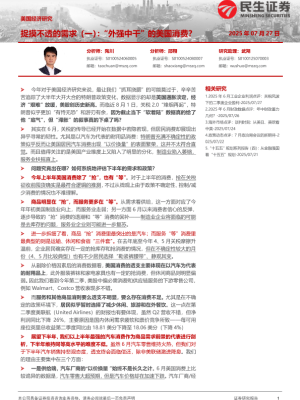 【民生证券】【202507】美国经济研究:捉摸不透的需求(一),“外强中干”的美国消费?-10页