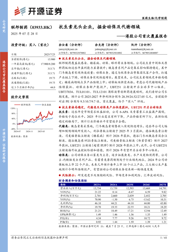 【开源证券】【202507】联邦制药(03933.HK)港股公司首次覆盖报告:抗生素龙头企业,掘金动保及代谢领域-41页