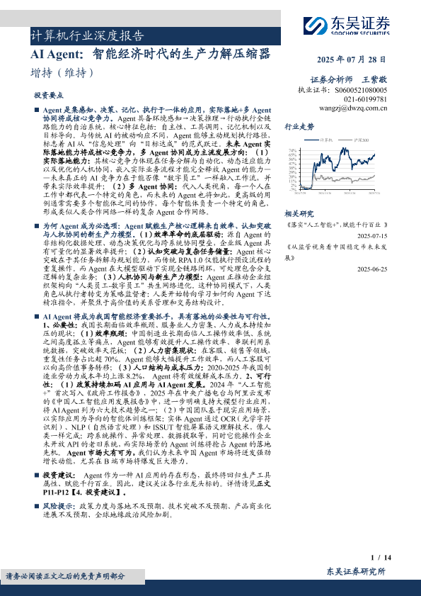 【东吴证券】【202507】AI Agent:智能经济时代的生产力解压缩器-14页